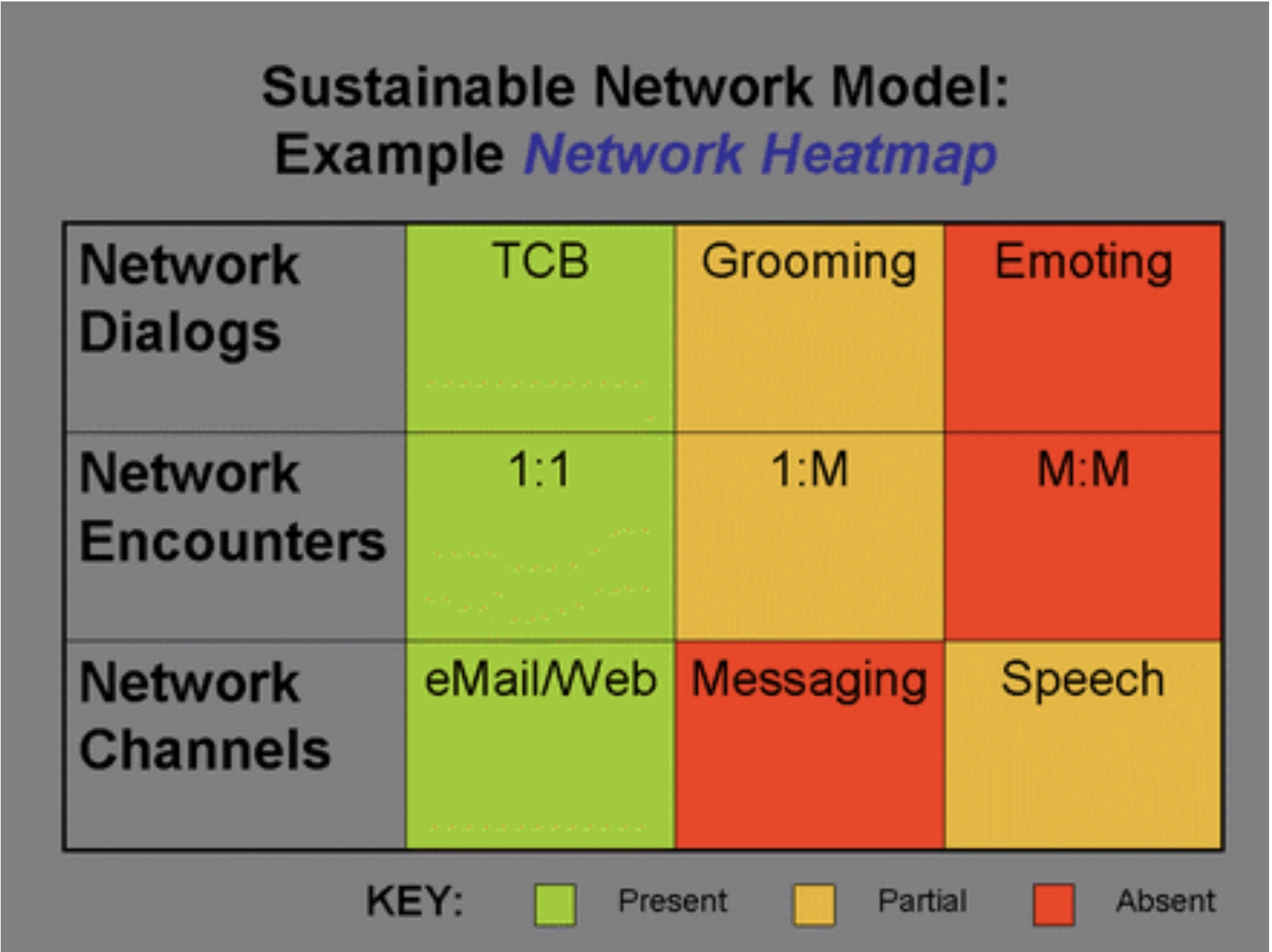 You can read more about these here. However, for the sake of relevance and context; in the business domain; lets asses the viability and sustainability of a network from a human communications and interactions viewpoint: