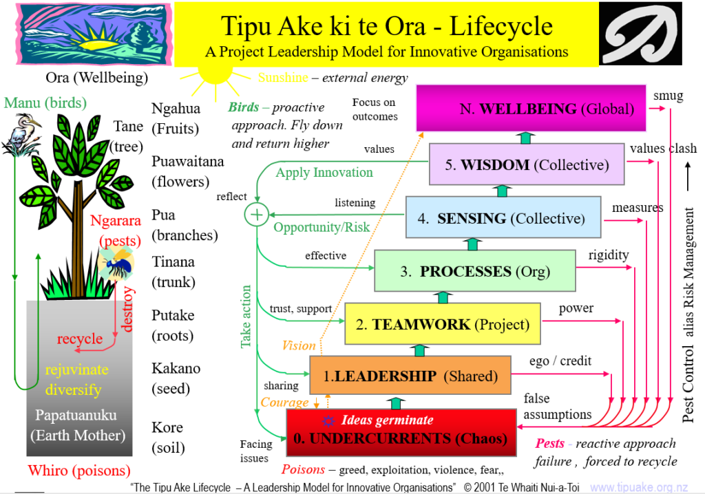 A powerful model for nurturing these capabilities is the Tipu Ake Ki Te Ora Lifecycle model for innovative organisations, which is described in this article. I also include a diagram of it below: